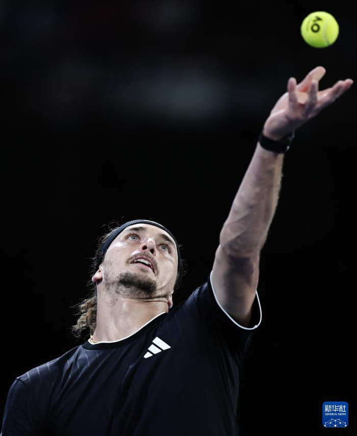 1月21日,兹韦列夫在比赛中发球。