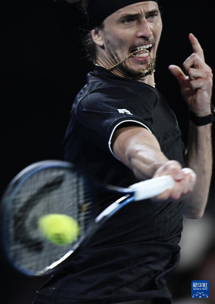 1月21日,兹韦列夫在比赛中回球。