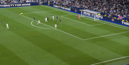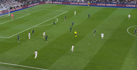 所以在下半场,皇马的表现依然稳健,还是通过人数足够的防守来构筑基础,在此之上进行次数有限,但威胁不小的反击,效果依然不错: