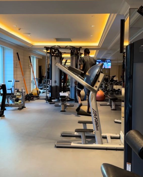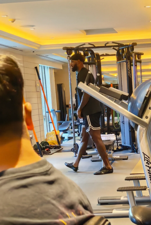 今日有网友在酒店健身房偶遇詹姆斯训练,他评论到:“凌晨4点的洛杉矶我没见过,但凌晨4点的上海外滩我看见了。我4点到健身房,詹姆斯6点到,近距离观看了世界顶级职业球员的训练,40岁了,每天如此自律!”