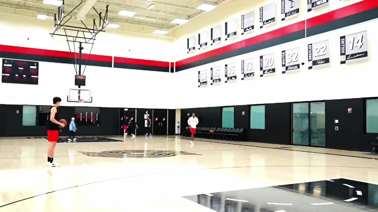 谈谈三分投射。杨瀚森自己也提到过投篮这一点。他周日训练结束后就加练了三分球,而且也都投得很好。就像我所见过的年轻人一样,他左右手都有练习投篮。当你身高7英尺以上还能随意出手三分时,对面的防守就无关紧要了。