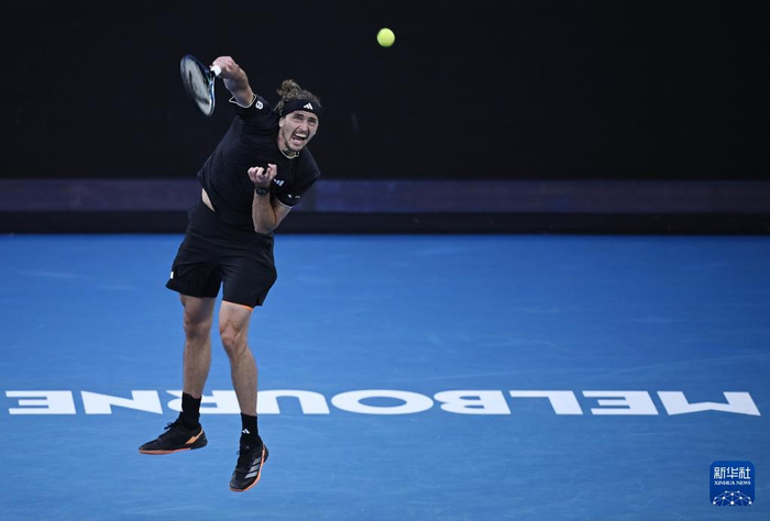 1月21日,兹韦列夫在比赛中发球。